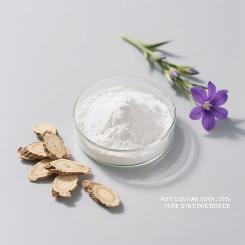 Gentiopicroside 98% (CAS: 20831-76-9) is a premium bioactive extracted from Gentiana scabra roots, clinically proven to disrupt skin inflammation at the molecular level. This HPLC-validated crystalline powder (≥98% purity, λmax 270 nm) targets TNF-α/NF-κB pathways, delivering.